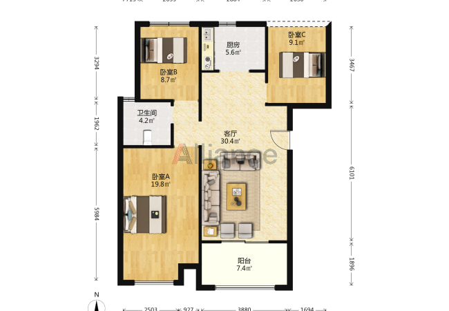 3室2厅 1卫