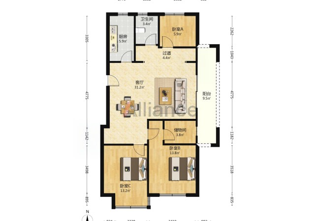 3室2厅 2卫