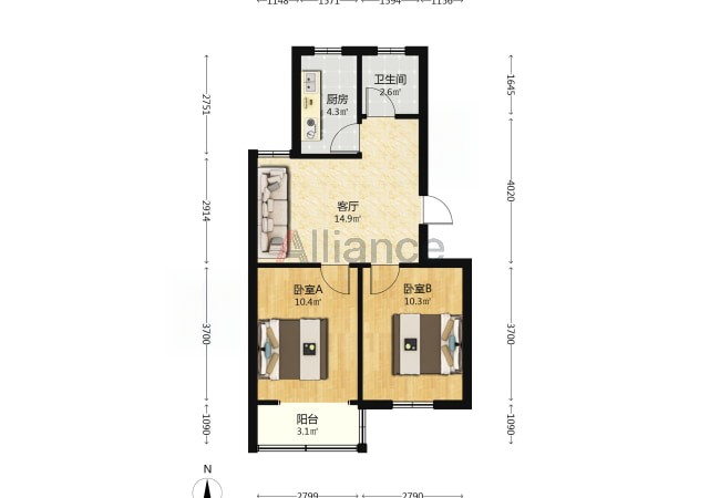 2室1厅 1卫