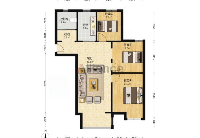 3室2厅 1卫